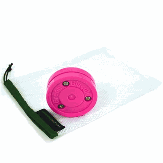 Home :: Green Biscuit Blush Pink Passing Stick Handling Training Hockey Puck with Bonus Bag